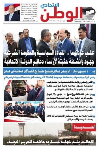 "الوطن الاتحادي" تتميز.. العدد7 وتغطية حصرية لجهود الرئيس هادي والحكومة في...