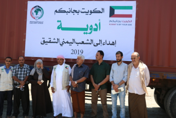 تسلمت وزارة الصحة العامة والسكان السبت شحنة أدوية مقدمة من الجمعية الكويتية للإغاثة في اطار حملة "الكويت الی جانبكم".