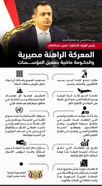 انفوجراف من مقابلة رئيس الوزراء مع قناة اليمن...