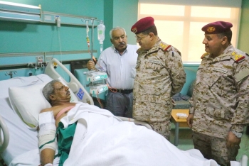 بالصور.. وزير الدفاع يطمئن على صحة محافظ لحج واللواء...