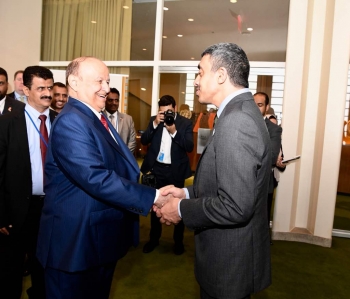 استقبل فخامة الرئيس عبدربه منصور هادي رئيس الجمهورية مساء امس بمقر إقامته في نيويورك الرئيس والمدير العام التنفيذي لشركة جنرال الكتريك للطاقة "راسل ستوكس" والوفد المرافق...