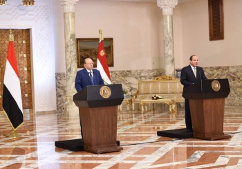 رئيس الجمهورية يعقد مع أخيه الرئيس المصري قمة رئاسية مغلقة ويعقبها جلسة مباحثات موسعة بين الوفدين...
