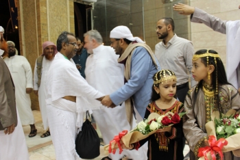 شاهد بالصور.. وزير الأوقاف يستقبل أول فوج من الحجاج اليمنيين بمكة...