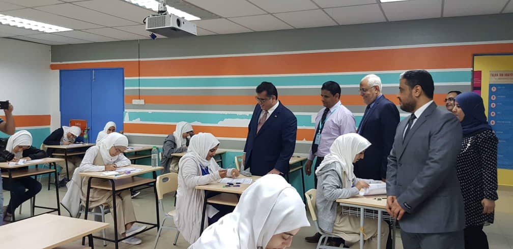 هذا وقام السفير باحميد بجولة تفقدية للقاعات الإمتحانية في المدرسة العربية العالمية الحديثة بالعاصمة الإدارية بوتراجايا واستمع من اللجنة الإشرافية الى شرح عن سير العملية الامتحانية التي تجرى وفقاً للضوابط والموجّهات التي اعتمدتها وزارة التربية والتعليم.
