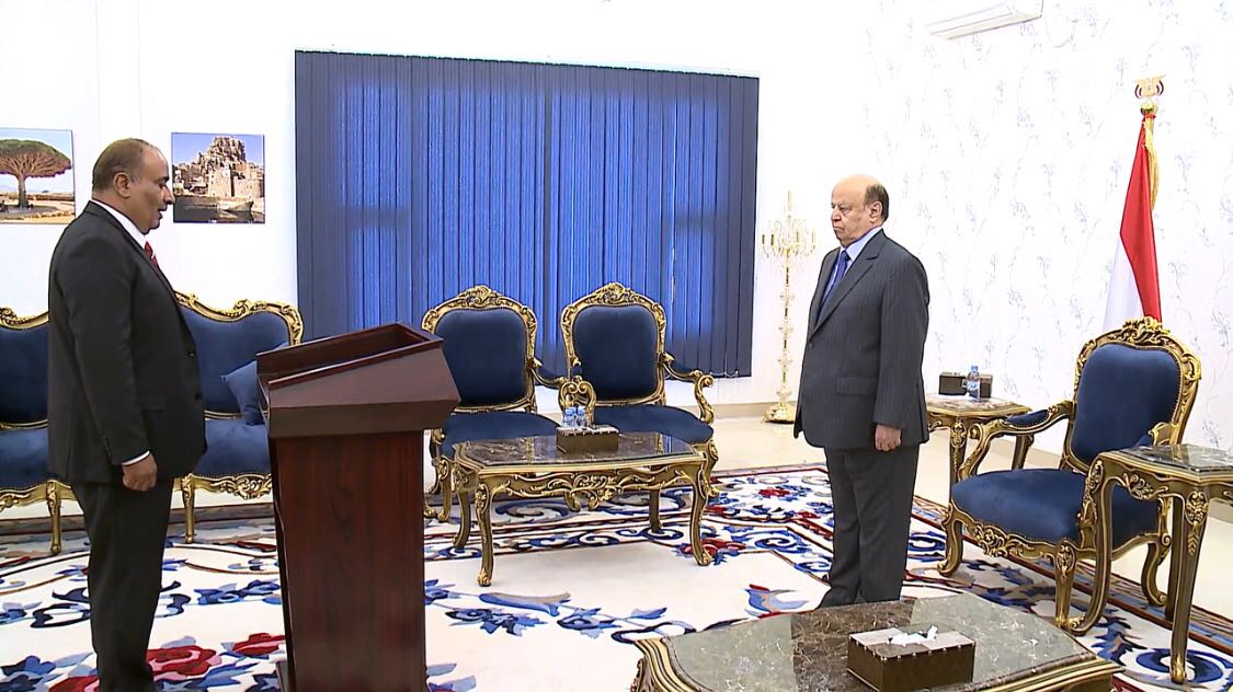 وعقب أدا اليمين الدستورية ،وجه فخامة الرئيس السفير مرمش بما يلزم في إطار أولويات واقع البلد والمحطات التي خاضها ومر بها منذ عملية التحول التي عاشها شعبنا عبر المبادرة الخليجية وتجربة مؤتمر الحوار الوطني الشامل ومخرجاته وانقلاب المليشيا الحوثية الايرانية على توافق شعبنا اليمني وإعلانها الحرب على اليمن وطناً ومجتمعاً،والاشارة الى دور الاشقاء في دول التحالف العربي عبر عاصفة الحزم وكذلك قرارات الشرعية الدولية وفي مقدمتها القرار 2216 والانتصارات التي تحقق لاستعادة الدولة وبناء اليمن الاتحادي الجديد المبني على العدالة والمساواة والحكم والرشيد.