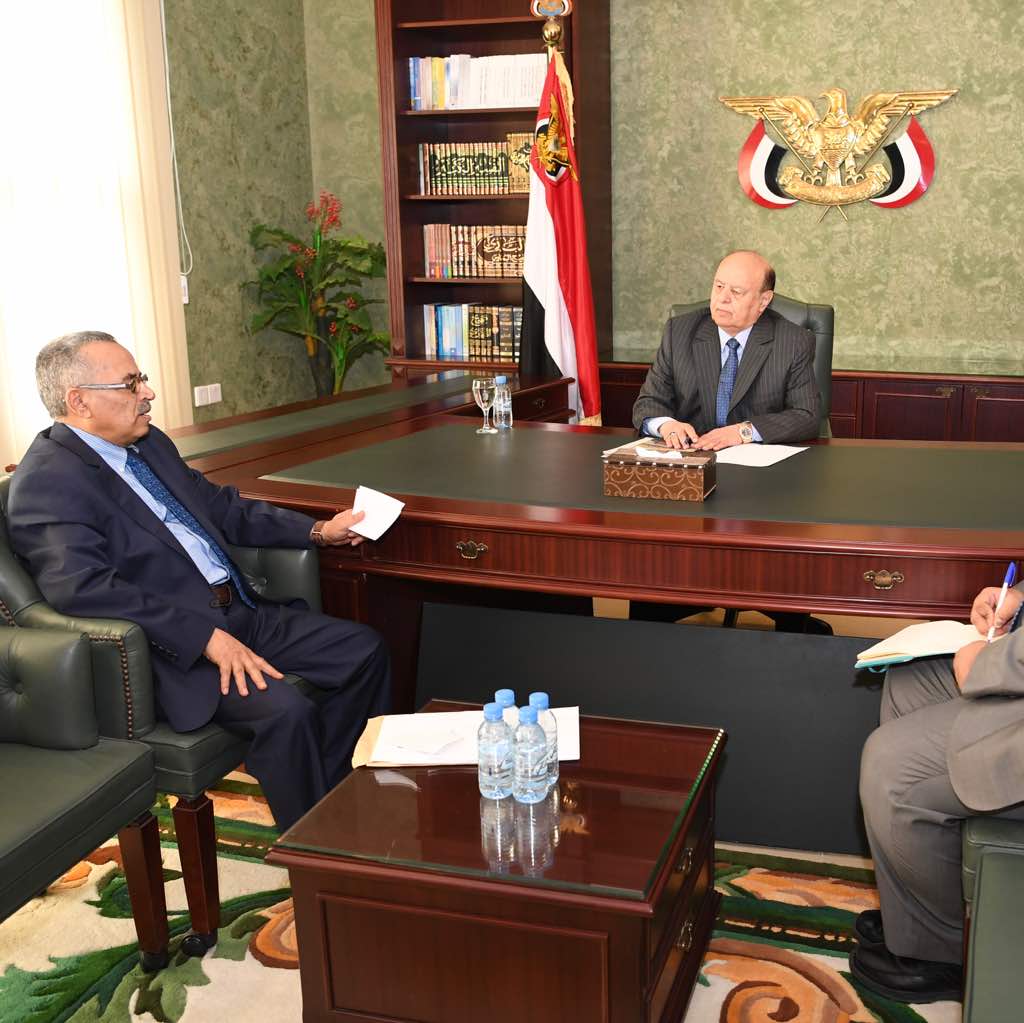 واكد رئيس الجمهورية خلال استقباله اليوم في قصر المعاشيق بالعاصمة المؤقتة عدن ،محافظ المحويت الدكتور صالح سُميع ،تقديم كافة أشكال الدعم والمساندة لتحقيق تطلعات شعبنا اليمني في هزيمة الانقلاب وبناء مشروع اليمن الاتحادي الجديد الذي اجمع عليه توافق شعبنا اليمني عبر مخرجات الحوار الوطني ومشروع دستور الدولة الاتحادية.