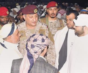 جاء ذلك خلال لقاء قائد القوات السعودية المشتركة الفريق ركن، فهد بن تركي بن عبدالعزيز، مشايخ حجة في مؤتمرهم الأول على أرض محافظة حجة، حيث قدم لهم التهنئة بنجاح انعقاد المؤتمر.