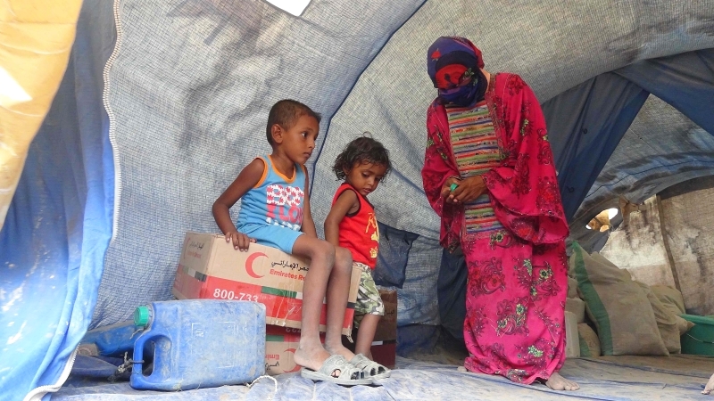 ومثل فتحية وأطفالها، نزحت مئات العائلات اليمنية من منازلها جراء المخاطر المحيطة بها وتقيم الآن في مخيم الوعرة الذي تموله دولة الإمارات.