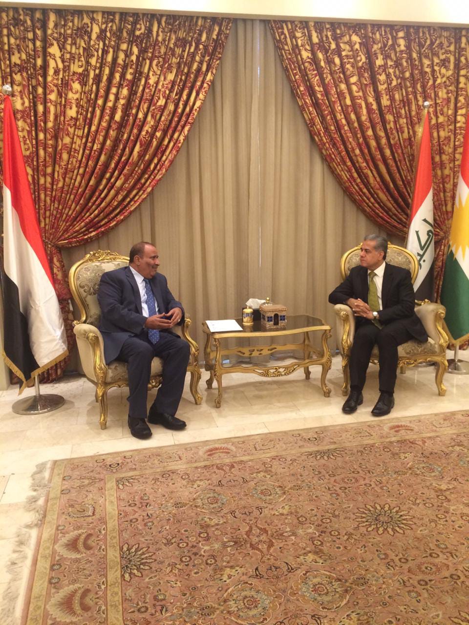 جاء ذلك عقب زيارة سفير اليمن لدى العراق الخضر مرمش الى مدينة أربيل عاصمة الإقليم ولقائه مع وزير الداخلية ومحافظ اربيل نوزاد هادي ومدير العلاقات الخارجية بالاقليم فلاح مصطفى، لمناقشة قضيتهم لدى سلطات الإقليم.