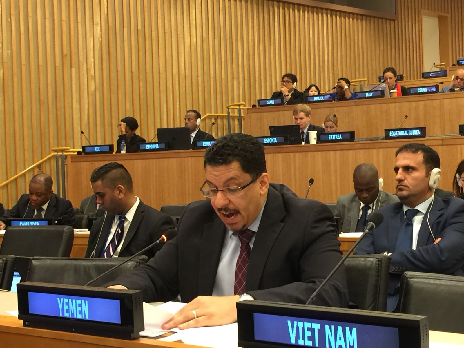جاء ذلك في كلمة ألقاها باسم الجمهورية اليمنية الثلاثاء في جلسة النقاش العام للجنة الاقتصادية والمالية التابعة للأمم المتحدة، وركز فيها على أهمية دعم الدول الأقل نموًا وبالأخص التي تعيش مرحلة الصراع أو ما بعد الصراع لتنفيذ أجندة التنمية المستدامة ٢٠٣٠.