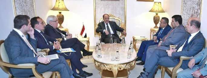 جاء ذلك خلال لقاء نائب رئيس الجمهورية اليوم الأربعاء مبعوث الأمين العام للأمم المتحدة إلى اليمن مارتن غريفيث بحضور رئيس الوزراء الدكتور أحمد عبيد بن دغر لمناقشة المستجدات والجهود الأممية المبذولة للتوصل إلى حل سلمي.