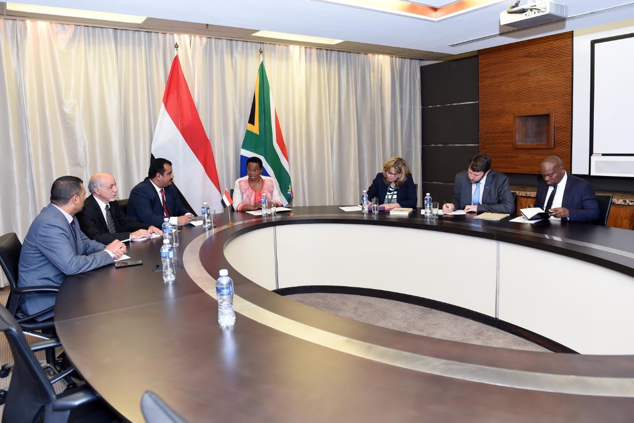 حيث جرى بحث عدد من قضايا التعاون الثنائي وأهمها تجديد بروتوكول التعاون بين وزارتي خارجية البلدين والتعاون مع الأكاديمية الدبلوماسية في جنوب إفريقيا واستكمال مشاريع عدد من اتفاقيات التعاون الثنائي بين البلدين في مجالات التربية والتعليم والتجارة والاستثمار ومنتدى الشراكة اليمني الجنوب إفريقي، وتسهيل إجراءات الاقامة للمواطنين اليمنيين المتواجدين في جنوب افريقيا.