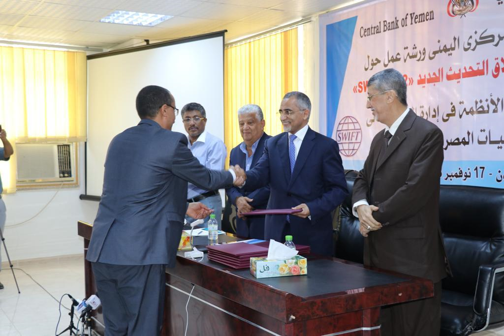 ونوه بالكوادر المحلية بنظام السويفت في البنك المركزي اليمني، مقارنة باستعانة بنوك مركزية بدول أخرى بخبراء أجانب لتفعيل النظام الحديث، كما تم توزيع الشهادات التقديرية للكوادر المبرزة.