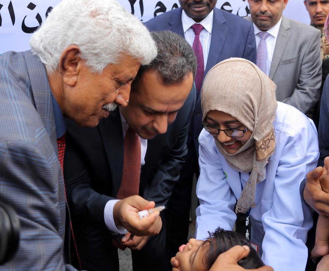 وعبر رئيس الوزراء في تصريح لوسائل الإعلام عن سعادته بتدشين حملة التحصين التي تستهدف القضاء على واحد من اخطر الامراض التي تصيب الاطفال وتؤثر على حياتهم في الحاضر والمستقبل.. مؤكدا ان الحكومة وبالتنسيق مع المنظمات الأممية والدولية ماضية في القضاء على امراض الطفولة والتغلب على التحديات التي يواجهها القطاع الصحي جراء الحرب التي اشعلتها ميليشيا الحوثي الانقلابية.
