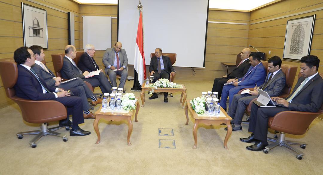 وأعرب نائب الرئيس، في اللقاء الذي حضره وزير الخارجية خالد اليماني، عن تقديره للجهود التي يبذلها المبعوث الأممي في سبيل إحلال السلام الدائم..مجدداً التأكيد على الموقف الثابت للشرعية بقيادة فخامة الرئيس عبدربه منصور رئيس الجمهورية نحو خيار السلام الدائم غير المنقوص والمستند على المرجعيات الثلاث المتمثلة في المبادرة الخليجية وآليتها التنفيذية ومخرجات مؤتمر الحوار الوطني وقرار مجلس الأمن الدولي رقم ٢٢١٦.