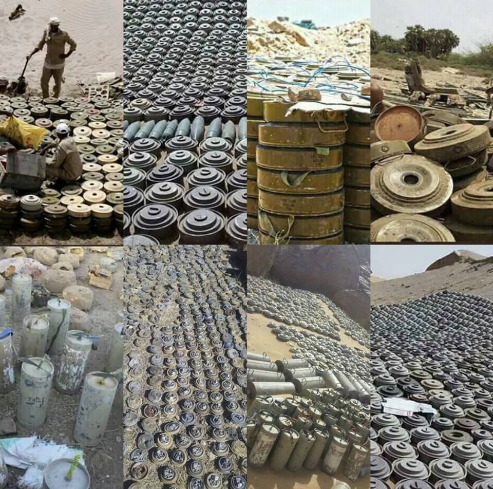 وذكر التقرير أن معلومات المركز التنفيذي للتعامل مع الألغام في اليمن، تشير إلى أن الجيش اليمني قام خلال الفترة بين 2016 و2018 بنزع 300 ألف لغم، وتشكل هذه الكمية المهولة من الألغام خطراً مستداماً على حياة المدنيين، يتضاعف مع تعمد ميليشيا الحوثي، زراعة الألغام المحرمة دوليا بشكل عشوائي وكثيف في المناطق التي يتم طردها منها، بل حتى في المنازل، والطرق والمرافق العامة.