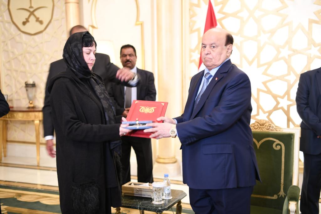 جاء ذلك خلال استقبال فخامته ومعه نائبه الفريق الركن علي محسن صالح ورئيس الوزراء الدكتور معين عبد الملك اليوم، مدير مركز الملك سلمان للأغاثه والأعمال الإنسانية الدكتور عبدالله الربيعه وسفير المملكة العربية السعودية لدى اليمن محمد سعيد آل جابر ،ومدير مركز "مسام" السعودي لنزع الألغام اسامه القصيبي ،وعدد من العاملين في المشروع وأهالي الضحايا من كرواتيا وكوسوفو وجنوب أفريقيا وغيرها.