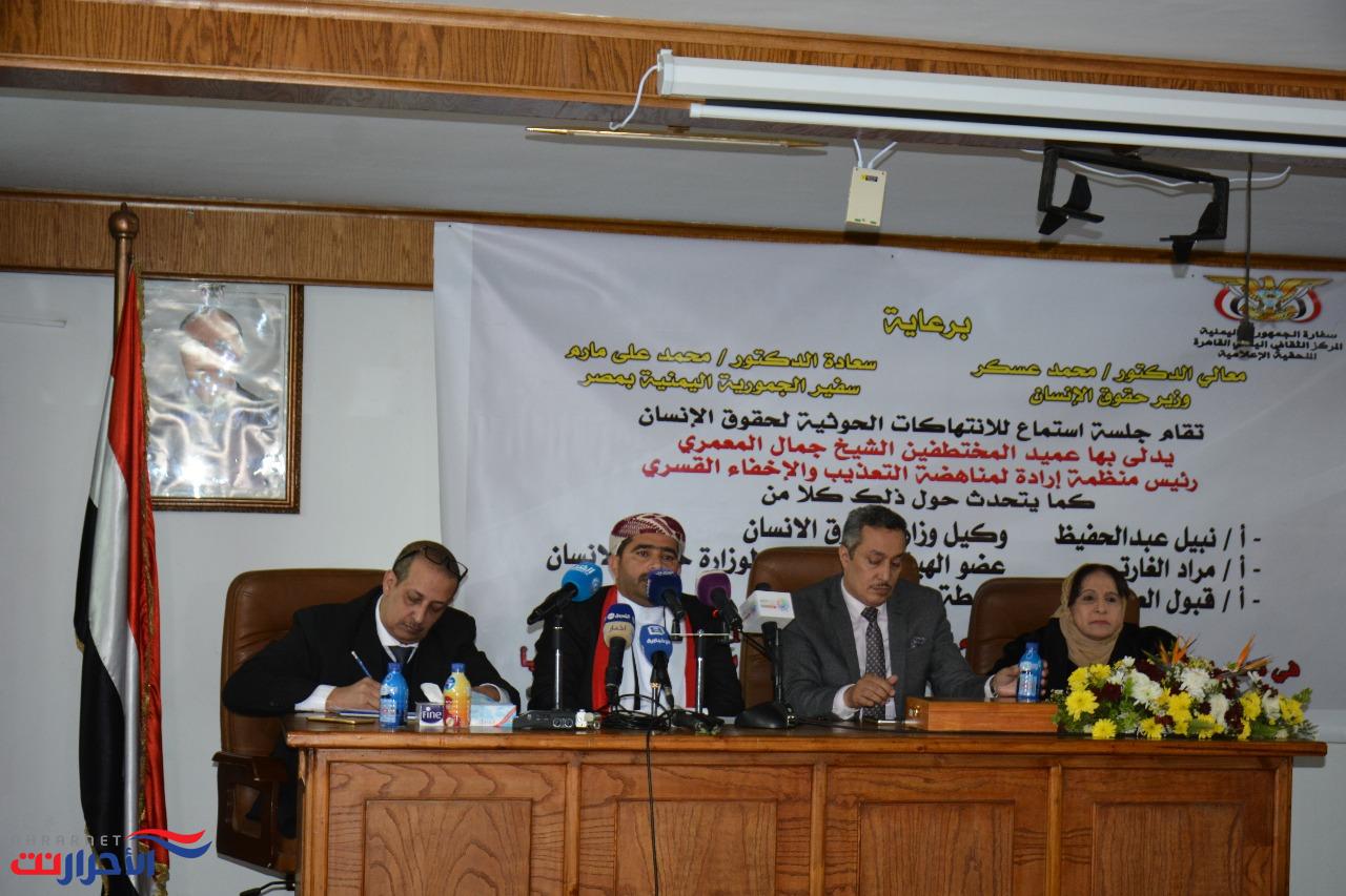 فيما استعرض وكيل وزارة حقوق الانسان نبيل عبد الحفيظ وعضو الهيئة الاستشارية لوزارة حقوق الانسان مراد الغاراتي أرقاماً واحصائيات متعددة تتعلق برصد وتوثيق حالات الاختطاف وانتهاك حقوق الانسان والتي بلغت ١٥ نوعا من الانتهاكات وبلغ خلالها عدد المختطفين من المدنيين في سحون ومعتقلات الحوثيين السرية اكثر من ٢٠ الف شخص من مختلف الاعمار بما فيهم النساء والاطفال وكبار السن.