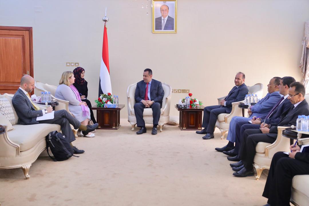 ورحب رئيس الوزراء في مستهل اللقاء بزيارة رئيسة بعثة الاتحاد الاوروبي الثالثة إلى العاصمة المؤقتة عدن، للاطلاع عن قرب على الخطوات الكبيرة التي قطعتها الحكومة في تطبيع الاوضاع وجهودها بالشراكة مع الاشقاء والاصدقاء لتخفيف معاناة الشعب اليمني الناجمة عن الحرب التي اشعلتها مليشيات الحوثي منذ انقلابها على السلطة الشرعية اواخر العام 2014م واستمرار رفضها لكل فرص السلام في تحدي سافر للارادة الشعبية والقرارات الدولية.. لافتا إلى اهمية زيارات سفراء الدول الكبرى مؤخرا إلى العاصمة المؤقتة عدن، لدعم الحكومة في تطبيع الاوضاع بالمناطق المحررة واستكمال الجهود الرامية لاستعادة الدولة وانهاء الانقلاب.