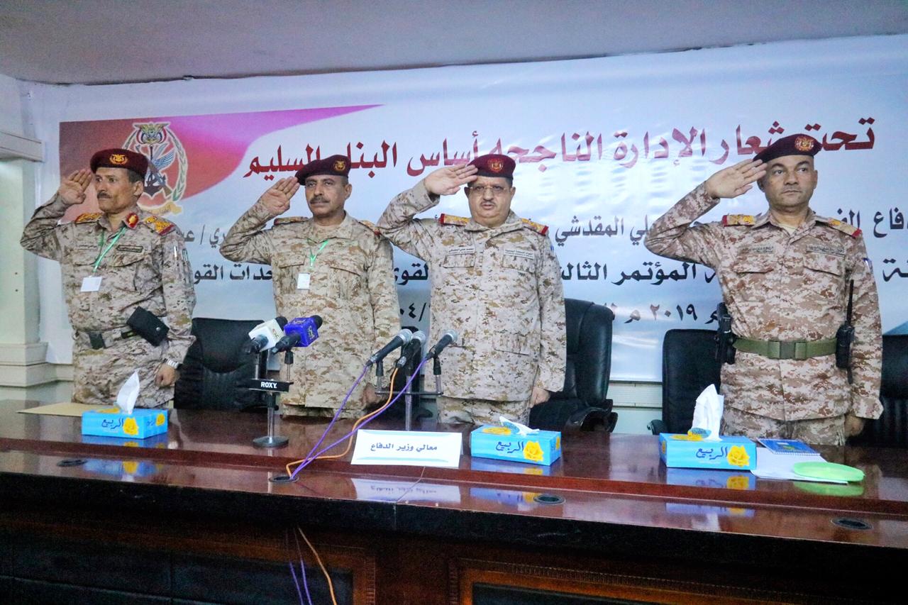 وفي المؤتمر الذي افتُتح بالسلام الجمهوري وآية من الذكر الحكيم ألقى وزير الدفاع كلمة رحب فيها بالحاضرين، ونقل في مستهلها تحيات فخامة الرئيس المشير الركن عبدربه منصور هادي رئيس الجمهورية القائد الأعلى للقوات المسلحة.